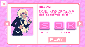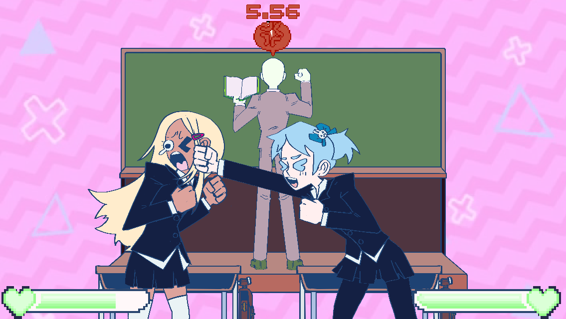 I like this game, and the artstyle something I do wish for is somewhat of a multiplayer like That would be intense and maybe an option for infinite health so the 2 could go at it, and maybe in the infinite health mode there is no teacher and its behind the school or somewhere for secretive